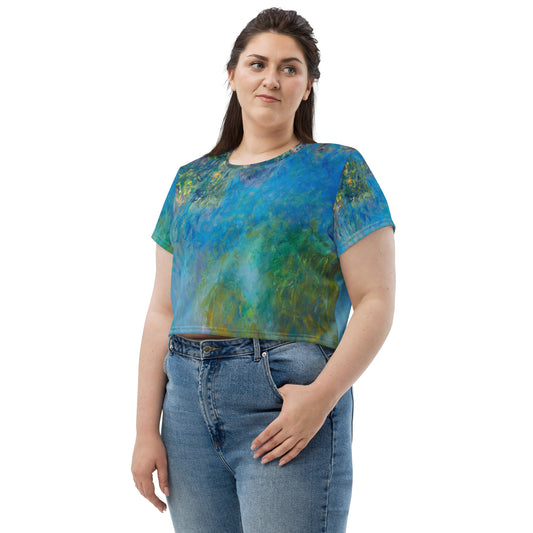 Claude Monet All-Over Print Crop Tee – Water Lilies and Wisteria Serenity