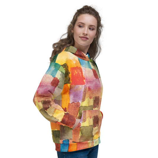Paul Klee Unisex Hoodie – Red Green Violet Yellow Rhythms Unleashed
