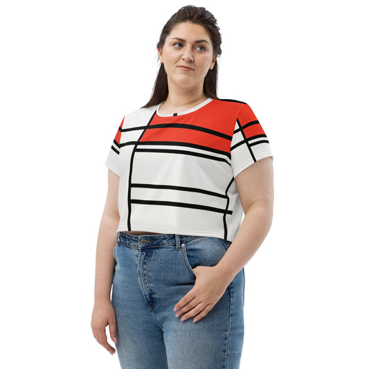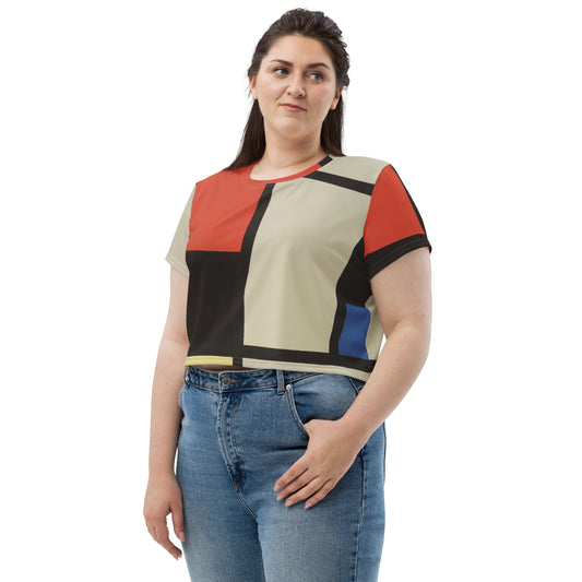 Mondrian All-Over Print Crop Tee – Geometric Composition