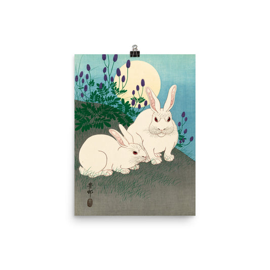Ohara Koson Rabbits Poster – Moonlit Japanese Art Print