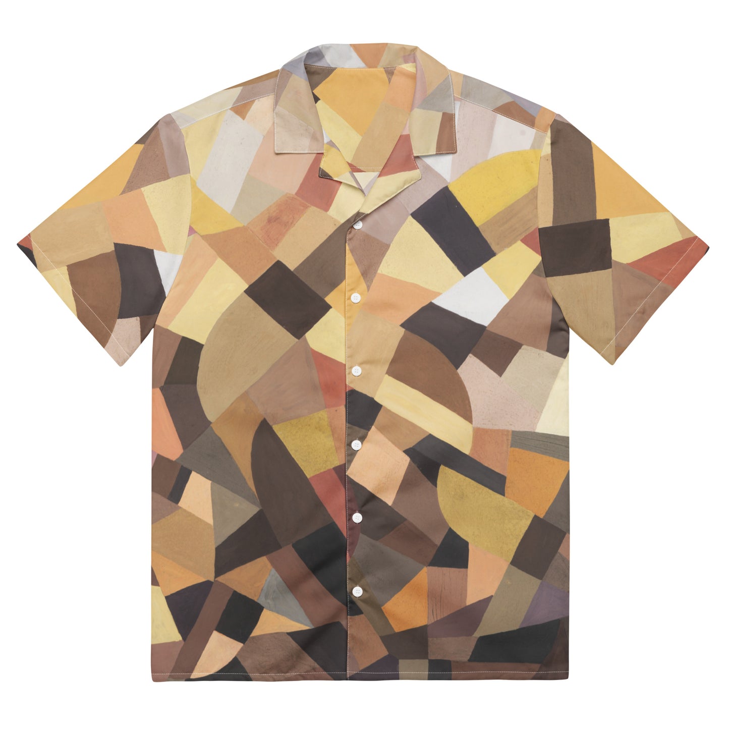 Freundlich Brown Unisex Button Shirt – Earth-Toned Art Appeal